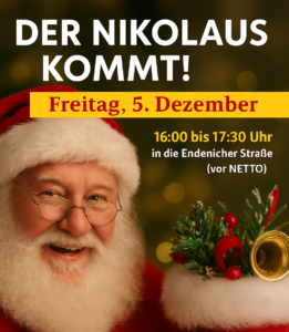 📅 Am Freitag, den 5. Dezember, ist es wieder so weit: Von 16:00 bis 17:30 Uhr besucht der Nikolaus die Endenicher Straße vor dem Weihnachtsbaum.