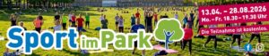 Es geht wieder los! Vom 13. April bis 28. August gibt es wieder kostenlos Sport im Park – Montag bis Freitag, 18:30 – 19:30 Uhr!